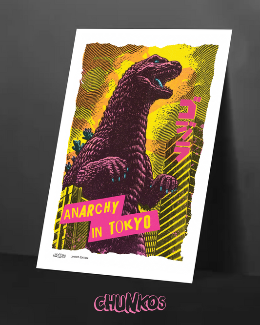 Anarchy in Tokyo Godzilla Art Print – Punk Rock Poster, Kaiju Wall Art