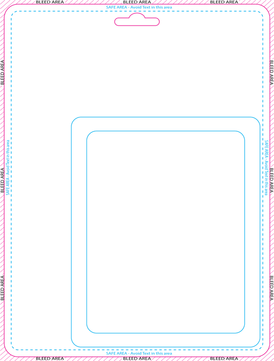 Browse our free downloadable templates to help you create your own card back designs like a pro. Simply use them as a overlay to make sure you have sufficient bleed (3mm) on all edges and have a good clear zone from the cut edges of the cards and any hole punches etc. An example of our blister bubble sizing is also included to help you make sure everything lines up and positions nicely.